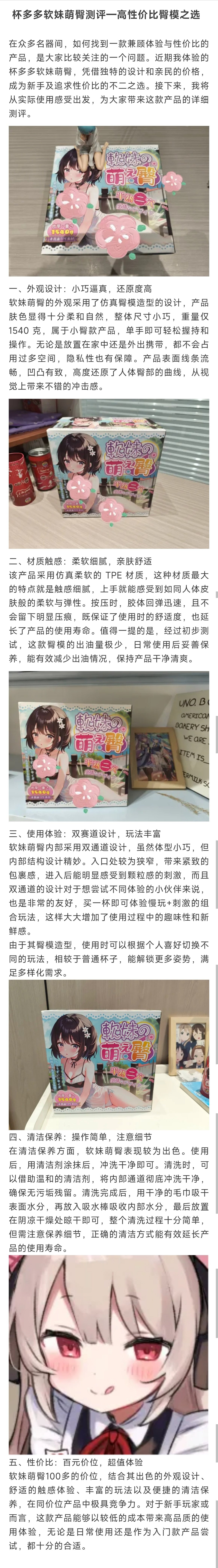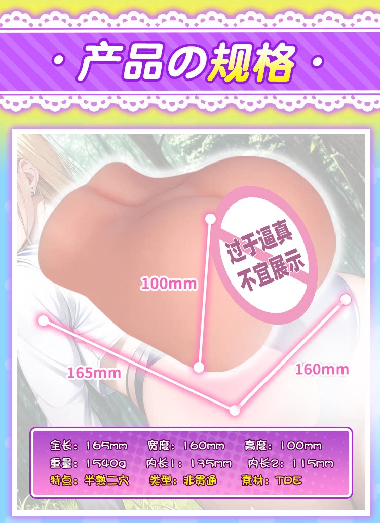 5 5544 0 Read Later Share 产品介绍 软萌可爱的外形,设计小巧的体积,让人爱不释手 1540克的肉厚双通道组合,满满的包裹感下,前后通道还能带来不同的体验 仿真可爱的馒头穴设计配合诱人小肚脐,单手可持的优美腰线造型,有没有击中你的兴奋点 属性信息 品牌杯多多品名软妹萌臀类型非贯通材质TPE刺激度适中\慢玩(前\后)特色外形可爱的软萌小屁股产品参数 杯体长度165mm杯体宽度160mm通道长135\115mm(前\后)重量1540克※存在手工测量或样品误差